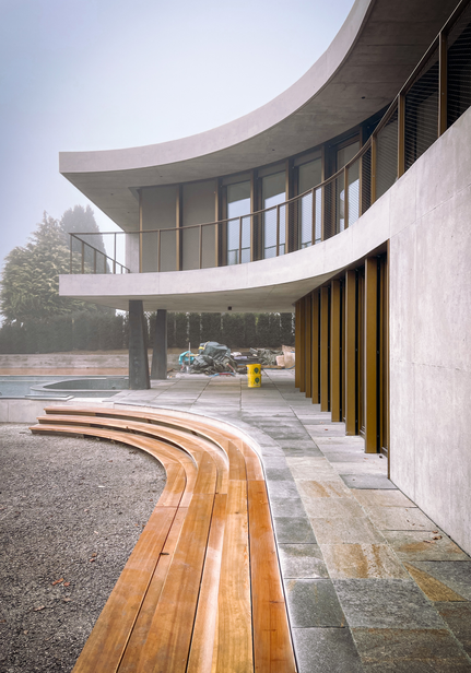 Winkelhaus can truly be described as powered by nature, as the house is designed to harness all its required energy from the environment, relying on geothermal and solar sources. By situating the structure as closely nestled in the ground as possible, the earth's mass will help regulate its temperature throughout the year. Additionally, being a smart home, the building will optimize energy consumption through cutting-edge technology. Digital fabrication is also incorporated into the project, with the outdoor kitchen's formwork being fully 3D printed by robots. Construction began in July 2023, and completion is expected in the first semester of 2025.